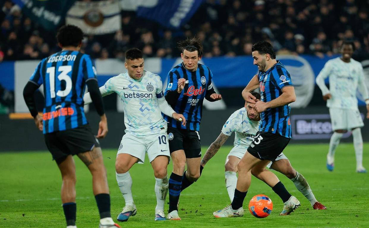 作为五大联赛中争冠形势最为紧张的联赛,意甲榜首之争昨夜再次呈现激烈态势。昨日率先比赛的AC米兰和那不勒斯均稳扎稳打收获胜利,这让国际米兰暂时跌至第三位。为了重新夺回榜首优势,蓝黑军团必须在“意大利蓝色竞技球场”奏凯亚特兰大。比赛开场后,国米即掌控场面发起猛烈攻势。第8分钟,国米获得左侧角球机会,阿坎吉敏捷抢点于禁区左侧凌空射门,门将卡内塞基奋力用脚将球挡出底线,惊险化解危机。